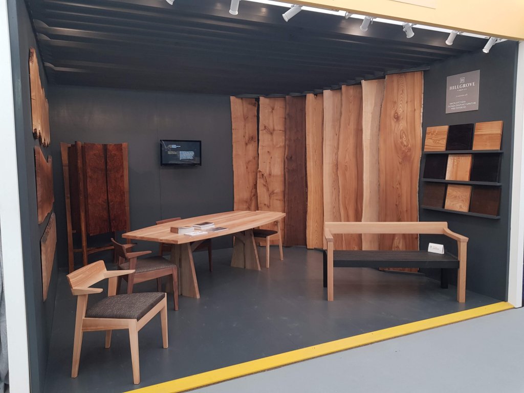 None of this stuff gets done in isolation and in fairness lots of these ideas have been brewing for some time, but they have to be done in sequence as part of a long term strategy. We had been thinking about getting back into doing a London show for sometime, but you really have to visit these shows over a few years to make sure they have the right feel and clientele. In the end we opted for Decorex with its Interior Design trade focus and international profile. We felt it would best suit where we wanted to pitch ourselves. It just so happened that we were having discussions with one of our main timber suppliers, English Woodland Timbers, about a new interior designer focused venture they were launching called the Hillgrove Timber Reserve. It made sense for us to work together and take a joint stand with Hillgrove bringing their rare beautiful selected timbers and us exhibiting stunning furniture made from those woods. We designed the stand and the brilliant workshop staff from English Woodland built it; a real collaborative effort.