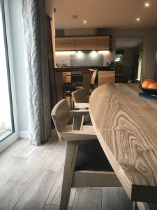 At long last, I now have my own lovely set of Iceni chairs around a table, both in olive ash, which sit in my new kitchen, also in olive ash, which we managed to ‘squeeze in’ around the weekends and evenings.
