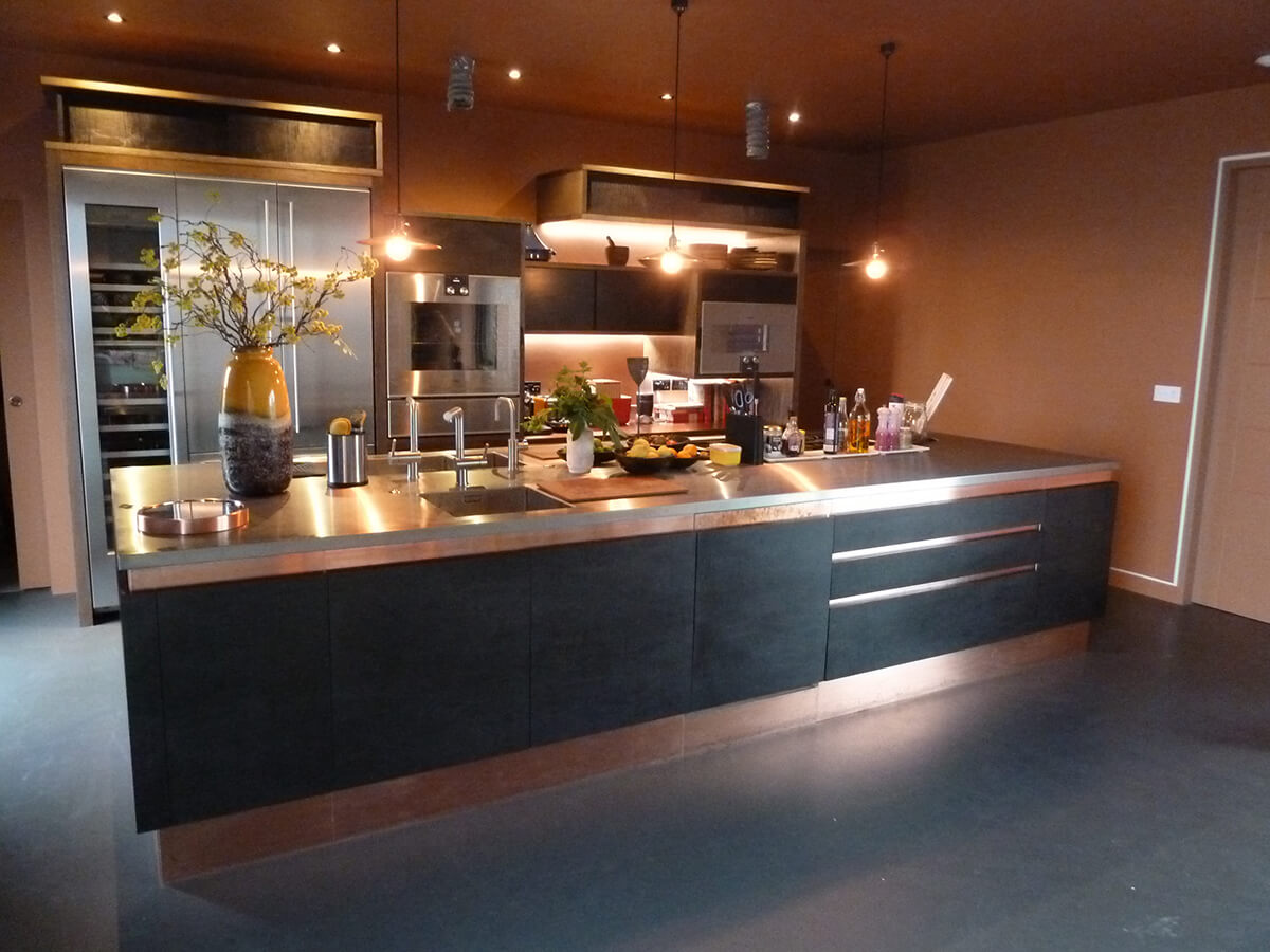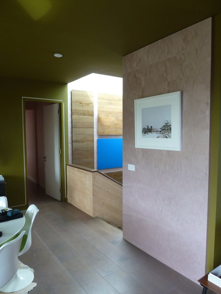 What I loved about this project is it was the clients who were pushing us for more radical design solutions, they are not scared of risk taking or bold design. That’s always a thrill for a designer when it happens and inevitably leads to new and exciting work – I see Bliss as very much a joint project between us and very creatively minded clients. Not sure what I’d pull out as a favourite piece or element of the Bliss project – the kitchen island perhaps? I also love the sideboard / media cabinet in the black sycamore wall panels of the snug, and the stair wall panels in fumed oak / pink ripple sycamore and intense blue, and the library and…