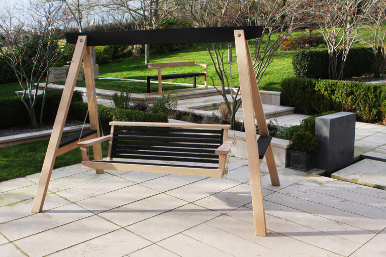 The other big news of 2016 was our collaboration with Sitting Spiritually, the garden furniture and swing seat makers from Lyme Regis. Late in 2015 they approached us to design a new contemporary swing seat for them. They had seen the work we had done on the Tudor Arcade Public Seating project and our prototype ‘Floating Benches’ with scorched and natural oak and wanted to harness that look in a new swing seat. Out of this came the ‘Yakisugi’ swing seat in 2,3 and 4 seat versions. We also licenced the Floating Bench to Sitting Spiritually and developed one and two seater versions as well as the original generous 3 seat bench. This became the ‘Simon Thomas Pirie Contemporary Range’, sold exclusively through Sitting Spiritually, but designed and made by us.