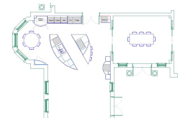 It is of course going to be stunning, with two large islands, a wall of cabinets for ovens and fridges, a big walk-in drum larder, a display / drinks cabinet and various other pieces.