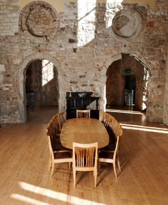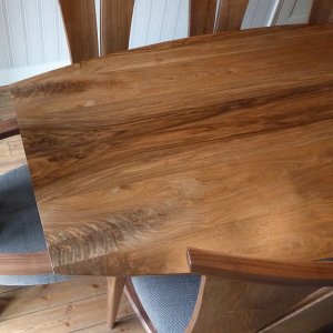 English walnut’s utter beauty and rich dark tones evoke an air of luxury, the increasingly rare elm is diverse in its colouring from golden brown to grey-green. Then there are lighter timbers like ash, as workaday as the oak but beautiful, especially with a stripe of olive heartwood at its core; and the almost white sycamore, much derided by some as a weed and despised as an invader but nonetheless beautiful, even more so if you find a log with a figured or rippled grain giving it a depth of character and a sheen like satin. Many of our dining tables combine two contrasting timbers: one for the table top and the other for the underframe, sometimes with an element of underframe timber incorporated into the top. Using the natural timber means that, whatever you choice, your table is completely unique and you can be certain that no one else has a table exactly like yours.