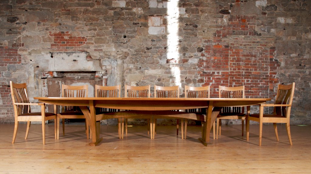 Our tables always have gravitas from a design perspective and longevity in service. It’s not unusual for Simon to be sitting around a table he made decades before, discussing new work or just catching up with old clients. Recently our very first commission, a dining set we refer to as ‘001’ came back to us for a refinish after nearly thirty years of service (you can read the full story here.)