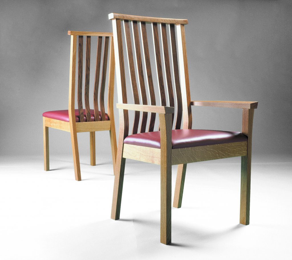 Many of our early commissions were for dining furniture and it was usually a set of Oryx chairs that would grace these tables, but despite Gazelle & Oryx working well on those projects they have always been a time consuming chair to make, which inevitably made them expensive. In 1999 we received an enquiry for 80 restaurant chairs from a well-known architectural practice who had seen images of Oryx in the design press. Through further discussions it became clear that the cost of Oryx would be prohibitive. As this was an issue I had encountered before with residential clients I decided to design a more simple chair with a slatted back that could meet the restaurant’s budget restraints. In doing so I hoped we would also open up our bespoke chair offering to a wider client base.