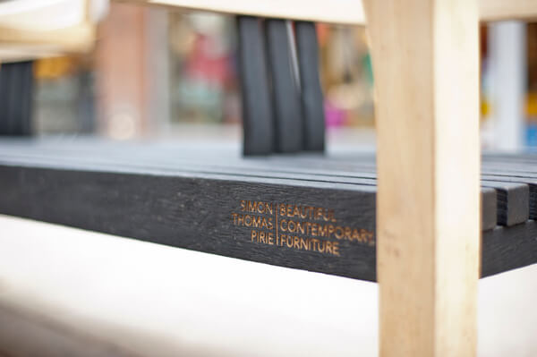 I wanted to create a strong contrast between black scorched bench area and the seat / bench elements. I had this vision of seeing the first end-on bench that faces up the arcade appearing to float like some kind of throne. The making processes of steam bending and scorching can be seen on the following video: