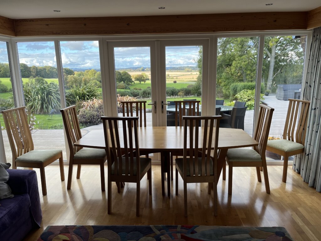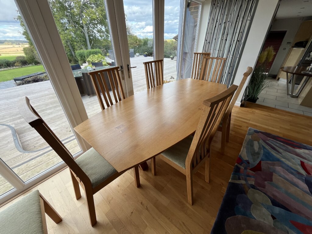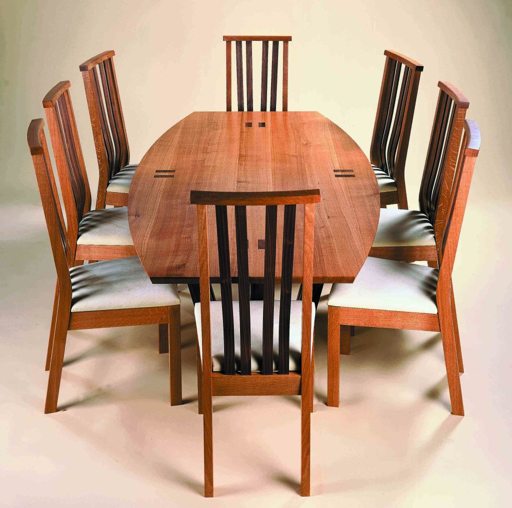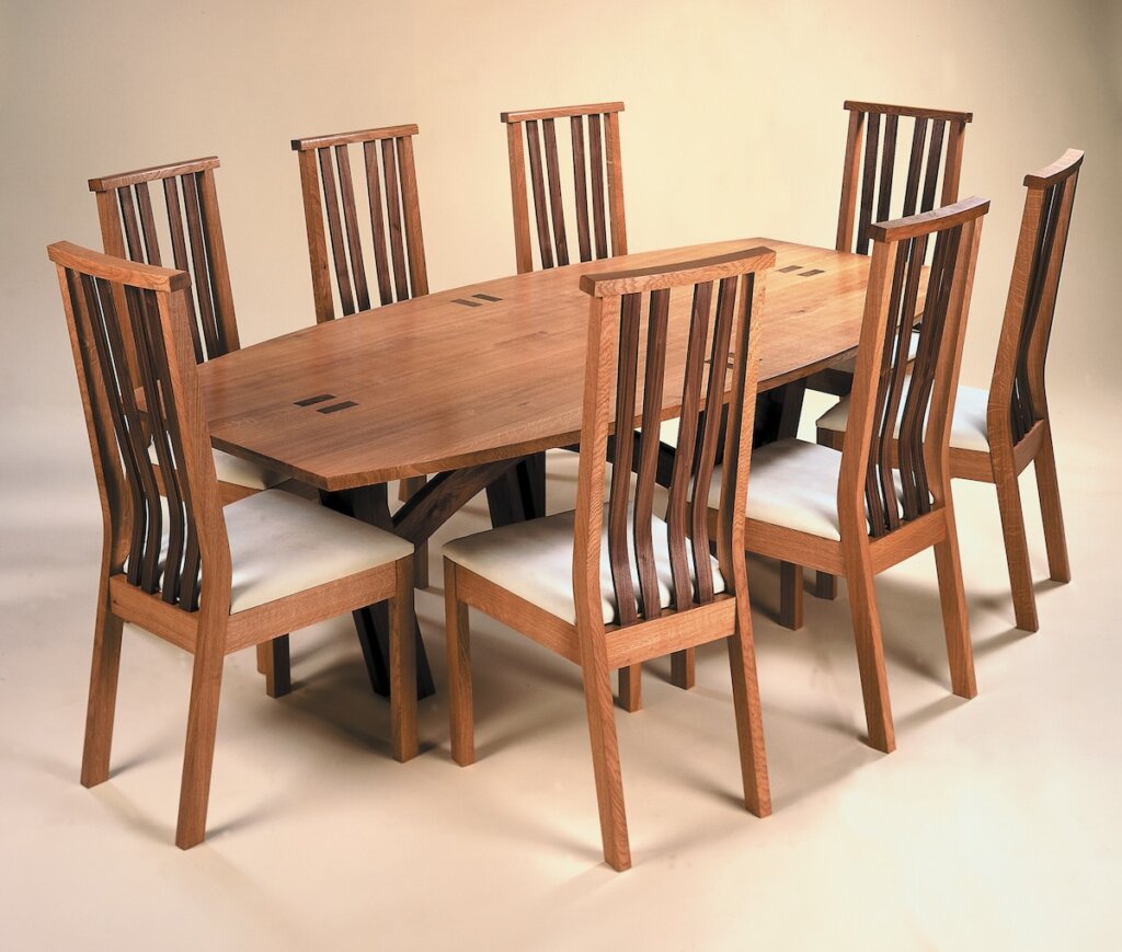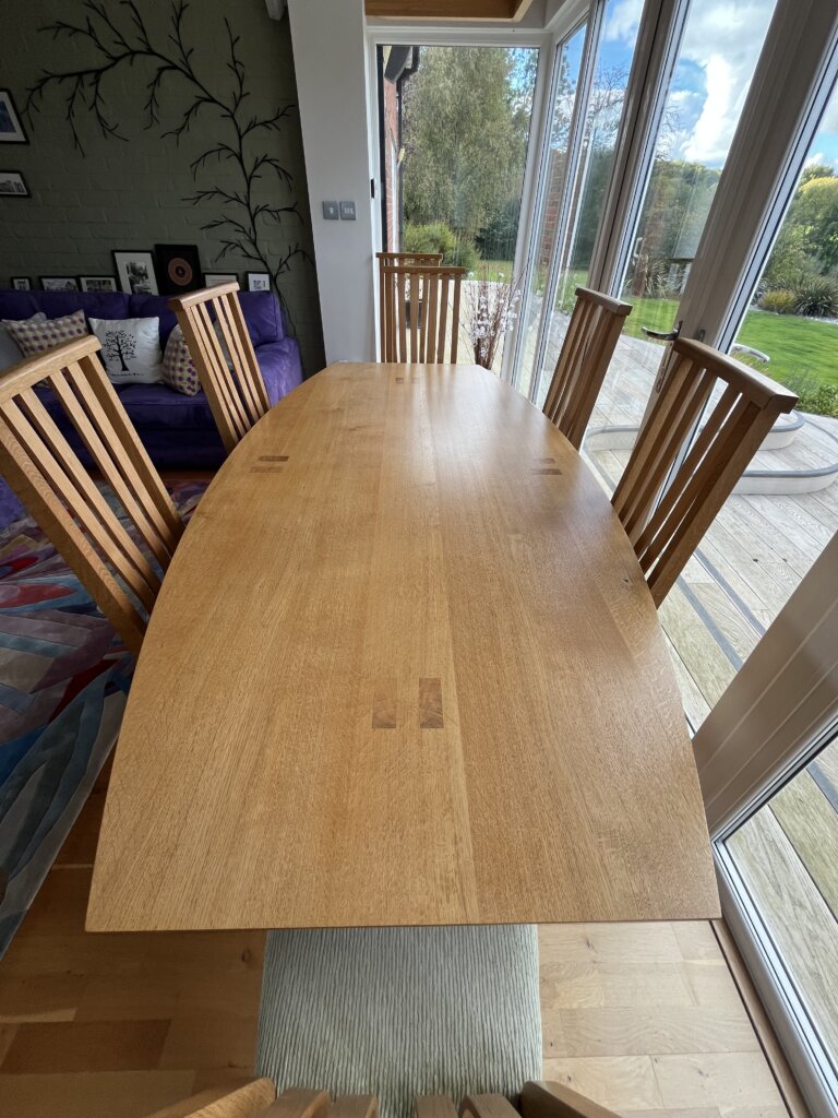 It’s a classic piece of Simon Thomas Pirie dining furniture designed and made in our workshops in 2002. This particular table was the one we professionally photographed that then spurned other similar dining sets over the next decade, but this one is the ‘original’.