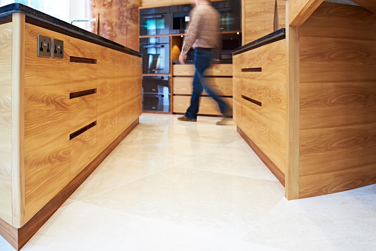 When Simon was approached by a potential new client to design a kitchen for his substantial new-build home near the South coast, the brief was a dream: ‘to come up with something really different” for what is an enormous space by most domestic standards. Sounds simple and straight forward and with lots of space to play with it seemed the only boundaries were in Simon’s own imagination. However, to design a kitchen which is practical and beautiful as well as unusual is much harder than it sounds.